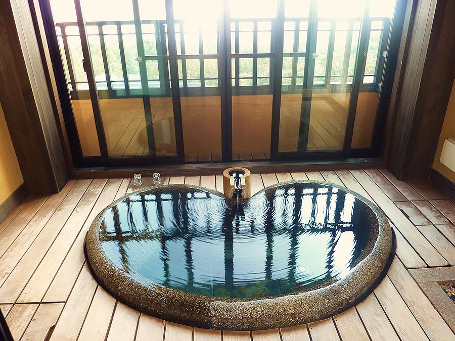 露天風呂っぽいけど一応室内なんですよー。