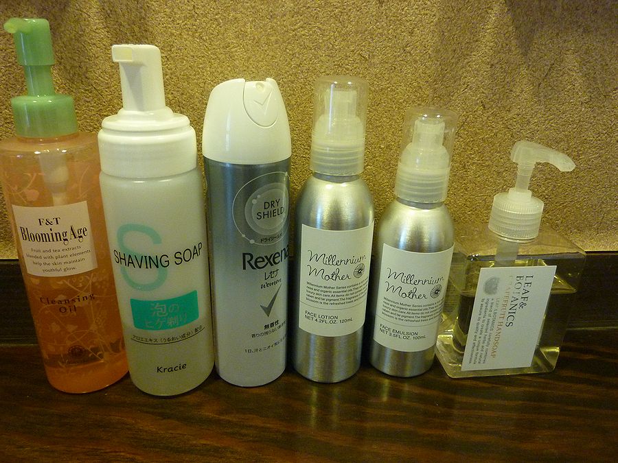 フルボトルでスキンケア用品が置いてありました。