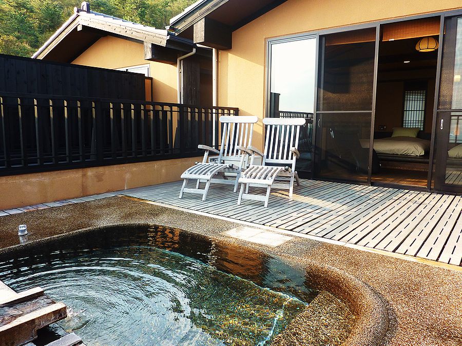 お部屋に露天風呂があるところは、何度も入ったり出たりしたいのでバスローブは必要ですね。