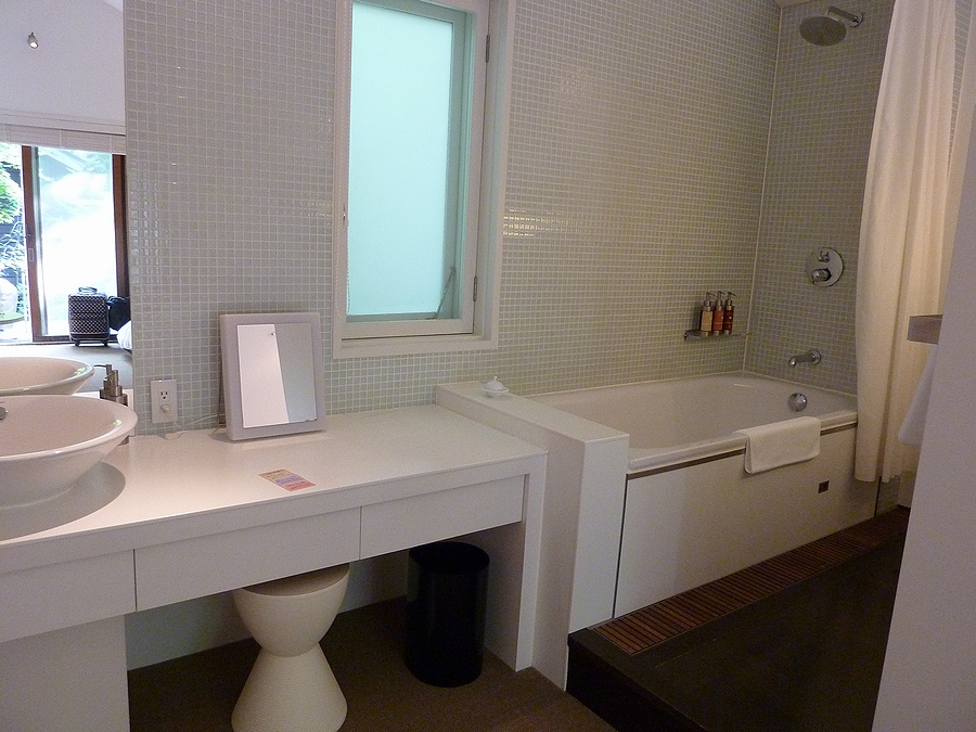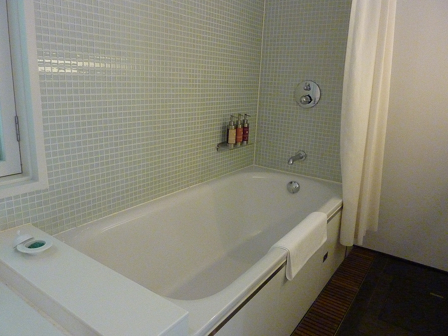 シャワーヘッドが高い位置にある固定式だったので、少々使い勝手が悪かったです。