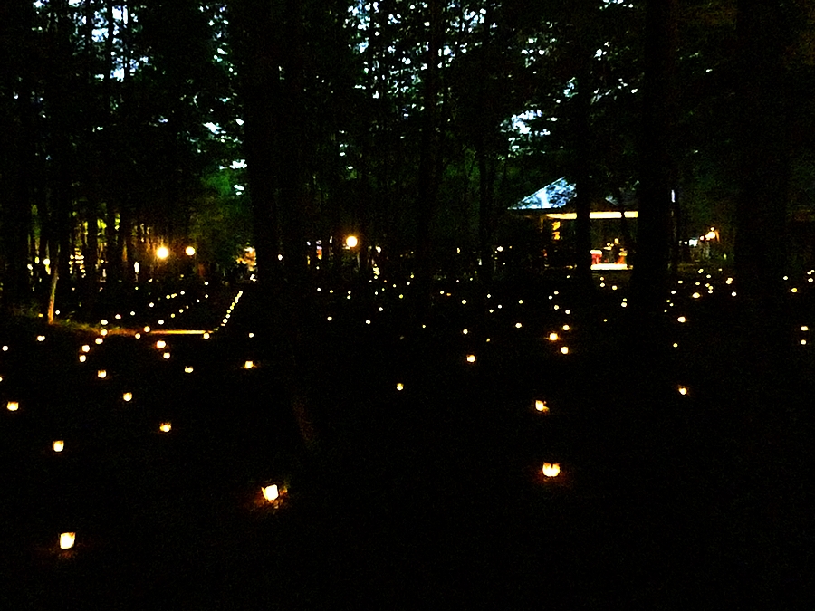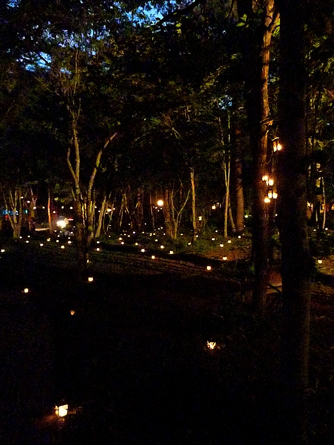 お部屋を出て、駐車場に向かうと、見渡す限りのキャンドルが!