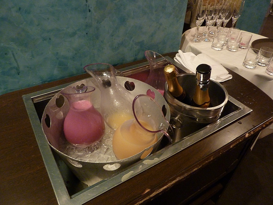ブルーベリーヨーグルトドリンク、りんごジュース、スパークリングワインがありました。