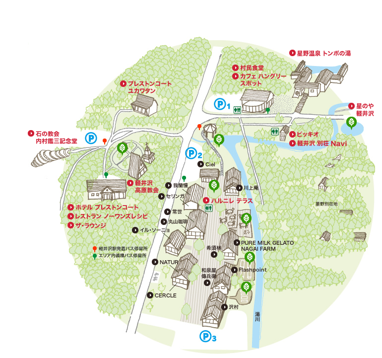 ホテルブレストンコートは星野エリアと言われるモダンな温泉街の一角にあります。
