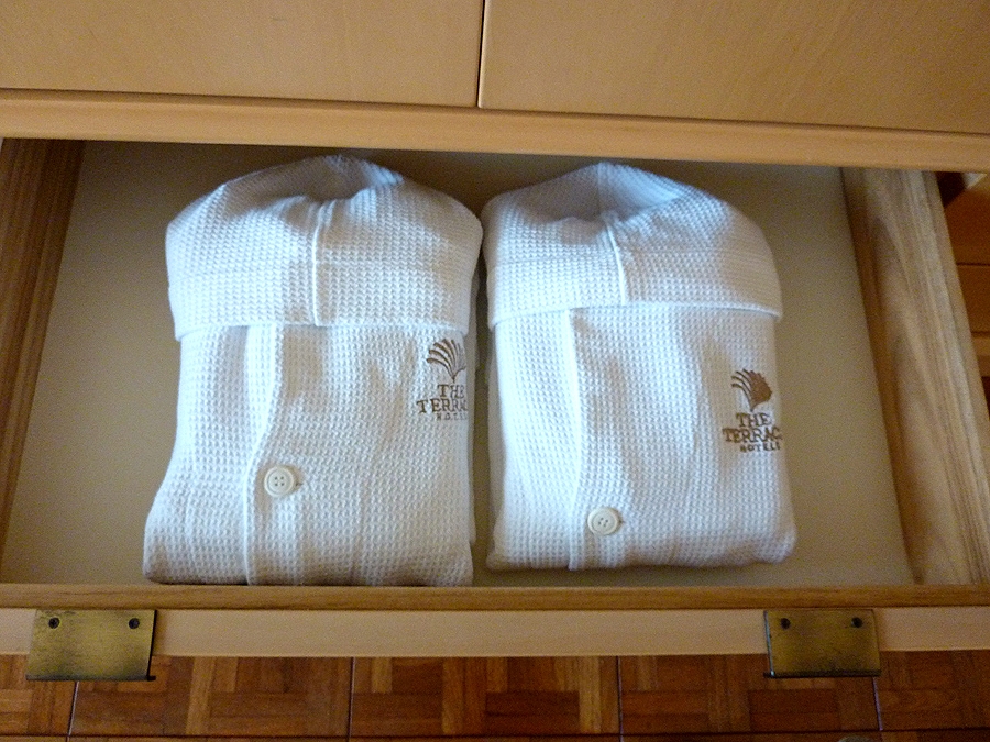 バスローブは良くあるタオル地ではなく、軽いワッフル素材。