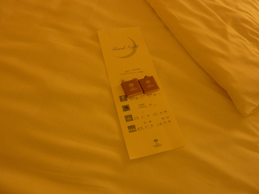 明日のお天気予報のカードにチョコレートが添えられて置いてあります。