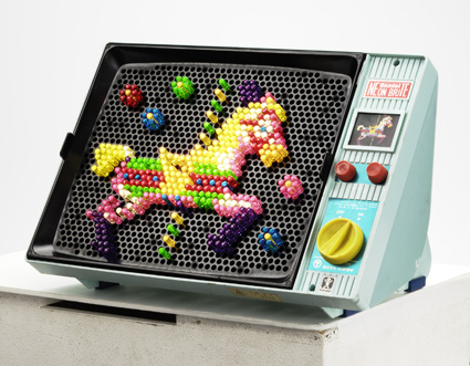 TVのブラウン管みたいなのに色とりどりのピンを刺して