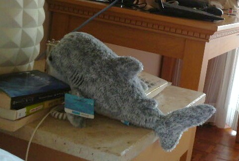 さっき買ったばかりのジンベイザメ君とぐっすりお昼寝タイムになりました。