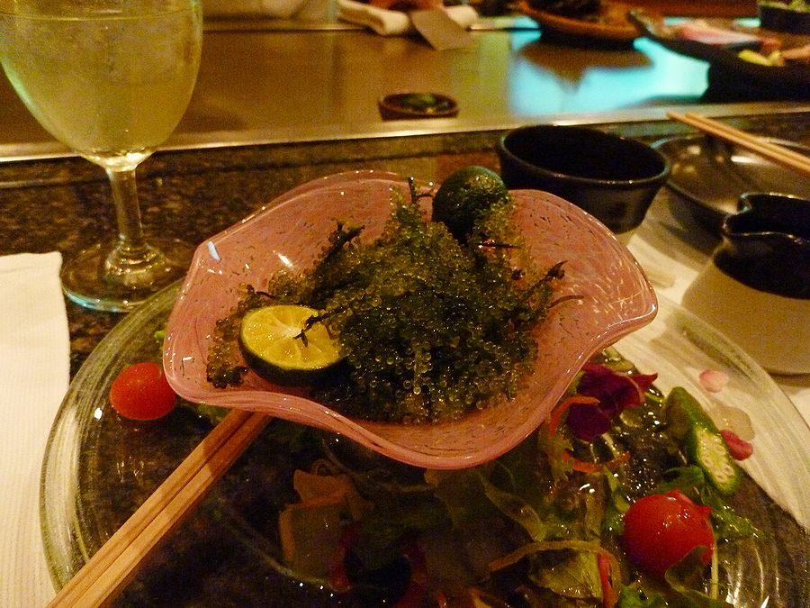 沖縄に来たら絶対食べたかった、海ぶどうとアグー豚です!