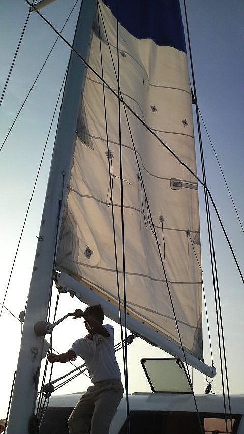 途中で帆をあげてのんびりと日没を待ちます。