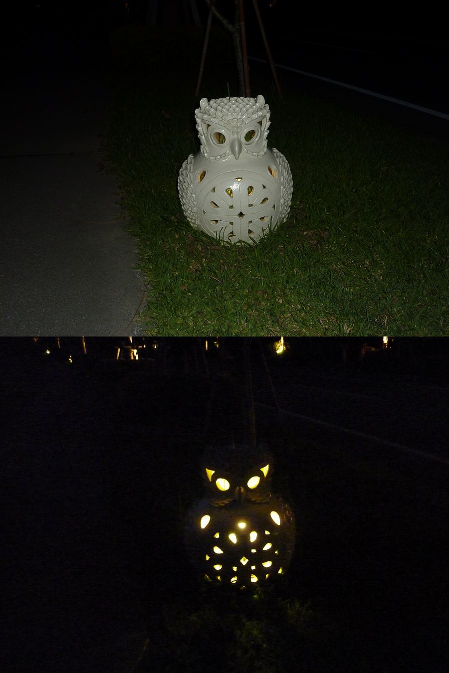 道々にあるこのふくろうさん、足元を照らすライトだったんですね。