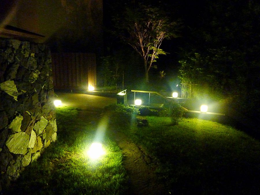 ライトアップされた通路が美しい・・・。