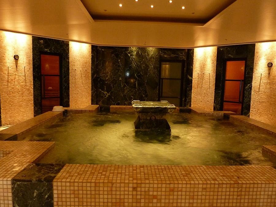 まずは45階のスパで体を温め、血行を良くしておきます。