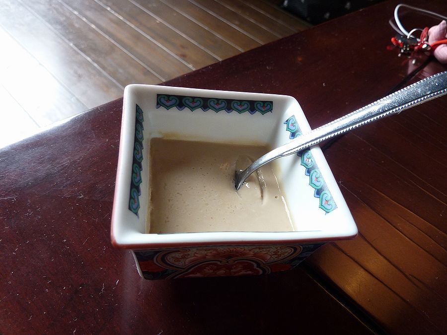最初に湯葉を頂いて、そのあとに添えてあるにがりを投入。