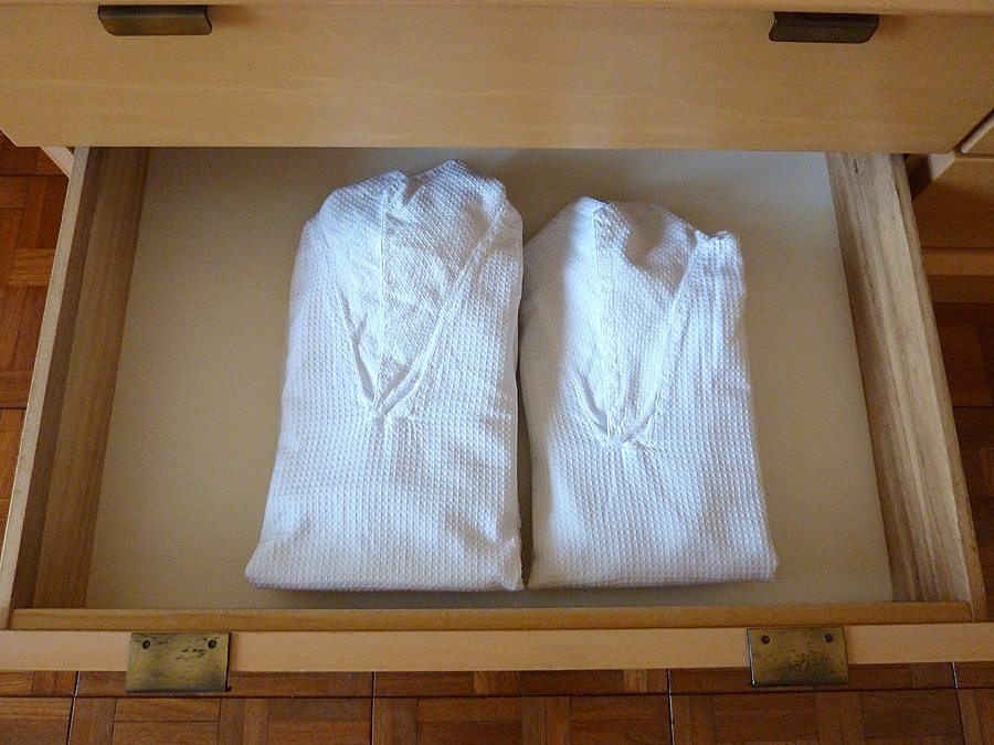 バスローブは良くあるタオル地ではなく、軽いワッフル素材。