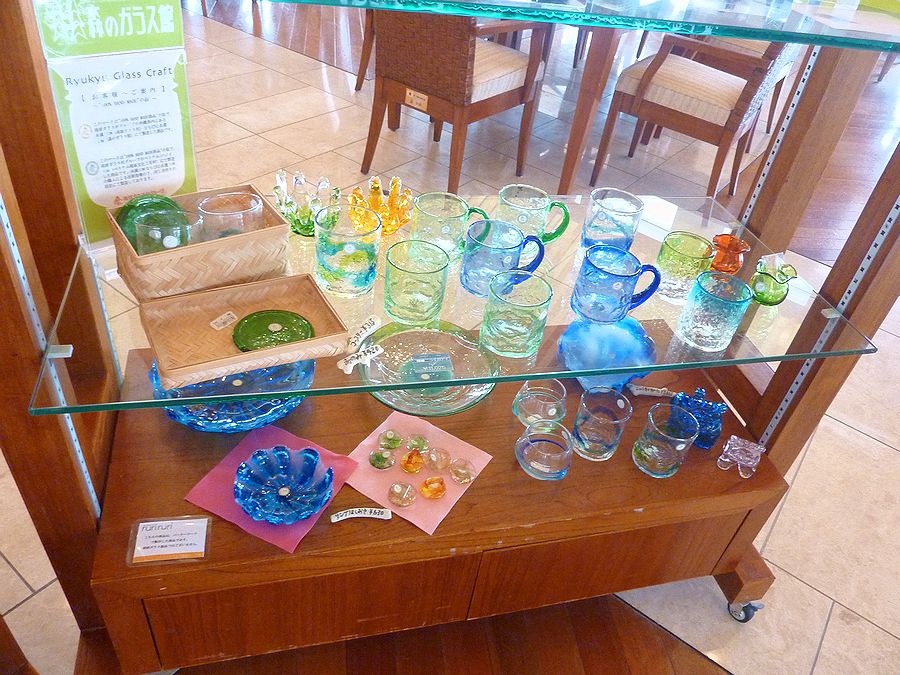 琉球ガラス製品や、沖縄の工芸品など、ちょっとしたお土産も買えます。