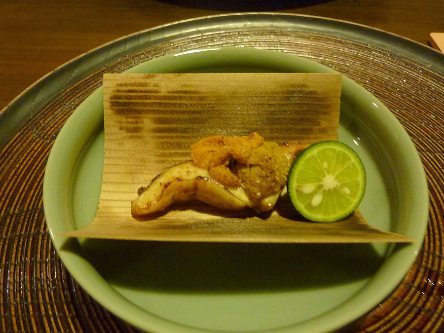 夕食は日本料理(一部お部屋では部屋食も可能)とカウンターでの鉄板焼きがあります。